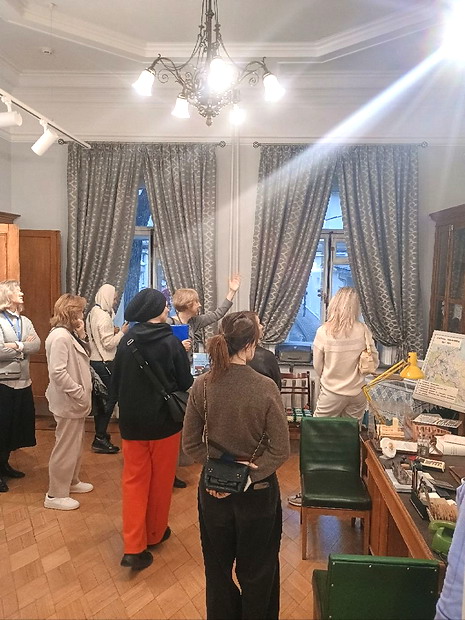 Гости познакомились с его архитектурой и подлинным убранством интерьеров. Особое внимание привлекла парадная лестница, старинный паркет, мраморные элементы, лепнина, оригинальные оконные стёкла.