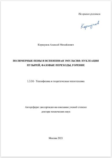 Полимерные пены и вспененная эмульсия: нуклеация пузырей, фазовые переходы, горение.