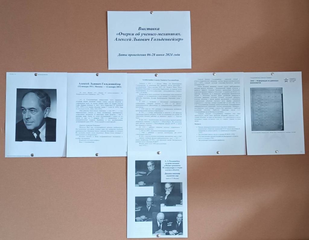 В отделе БЕН РАН в Институте проблем механики открылась выставка «Очерки об учёных-механиках. Алексей Львович Гольденвейзер».