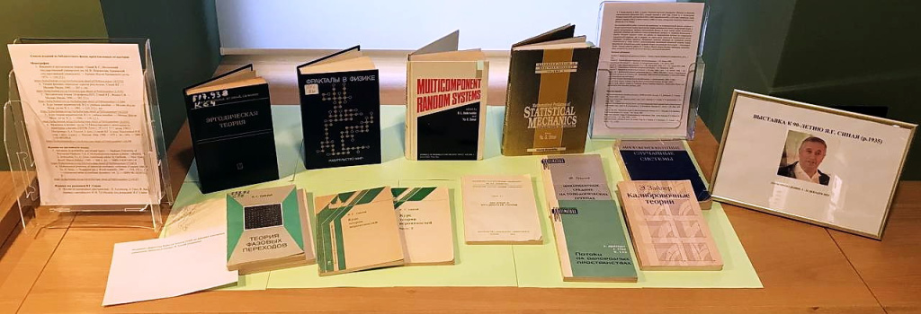 В экспозиции представлены научные труды Я.Г. Синая на русском и английском языках и научные работы, в которых он выступил в качестве редактора. Основная сфера его профессиональных интересов - теория динамических систем, эргодическая теория и математическая физика.