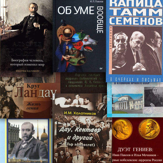 Экспозиция включает более 10 изданий — биографии и воспоминания о жизни и творческом пути выдающихся учёных, научную переписку, доклады и избранные труды лауреатов Нобелевской премии: Н. Н. Семёнова, И. П. Павлова, И. И. Мечникова и других.
