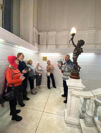 К.Ф. Буровым и А.Г. Измировым. Экскурсанты увидели парадную лестницу с бронзовыми статуями