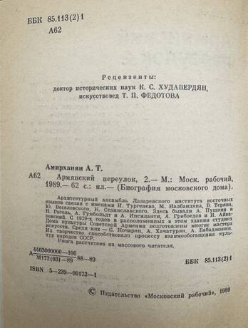 Четырнадцатая публикация посвящена изданию «Армянский переулок, 2» (М., 1989).