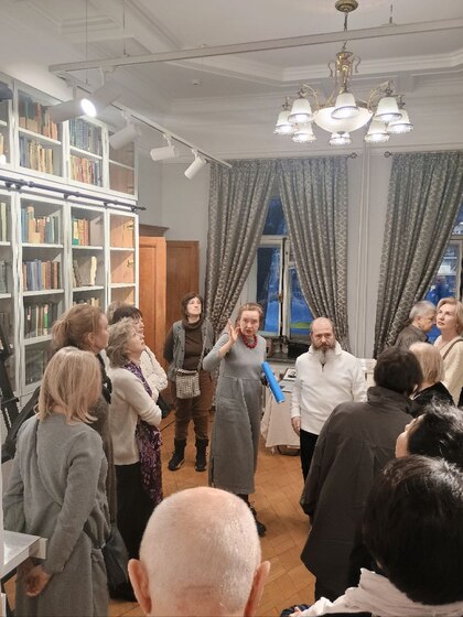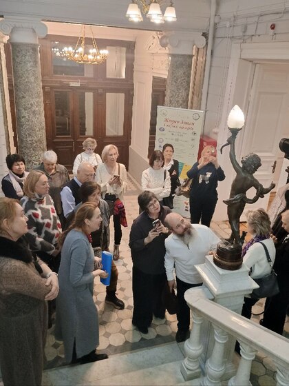 Московский гид Елена Устругова провела экскурсию по особняку с уникальной архитектурой Каминской — Пономарёва — Арафелова. Перед началом она кратко осветила историю зданий на Знаменке и их владельцев, что углубило понимание контекста места.