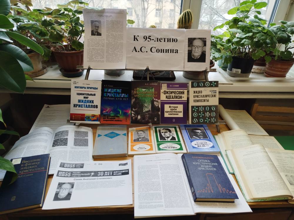 при исследовании электрооптических свойств жидкокристаллических композитов, лиотропных органических и минеральных жидких кристаллов. Кроме того, А. С. Сонин занимается историей и популяризацией науки.